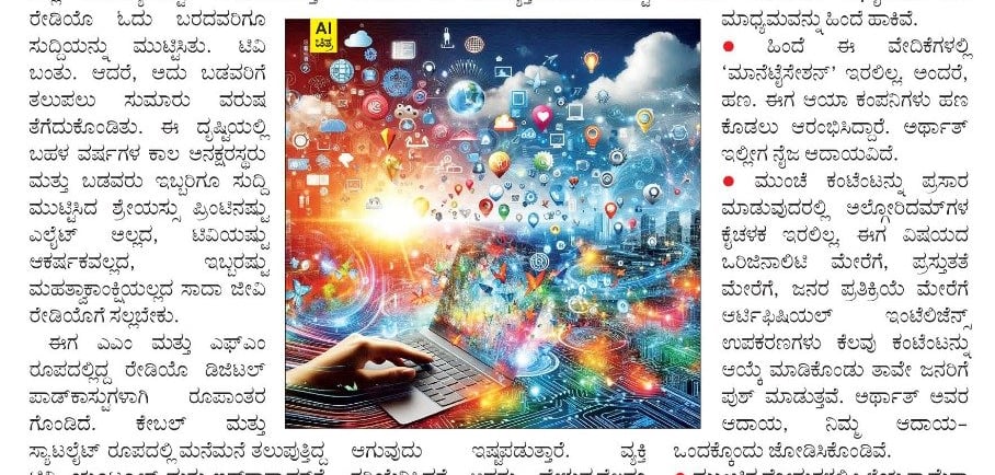 ಇದೀಗ ಎಎಂ ಮತ್ತು ಎಫ್ಎಂ ರೂಪದಲ್ಲಿದ್ದ ರೇಡಿಯೋ ಡಿಜಿಟಲ್ ಪಾಡ್ಕ್ಯಾಸ್ಟುಗಳಾಗಿ ರೂಪಾಂತರಗೊಂಡಿದೆ. ಕೇಬಲ್ ಮತ್ತು ಸ್ಯಾಟಲೈಟ್ ರೂಪದಲ್ಲಿ ಮನೆ-ಮನೆ ತಲುಪುತ್ತಿದ್ದ ಟಿವಿ ಯುಟ್ಯೂಬ್ ಮತ್ತು ಇನ್ಸ್ಟಾಗ್ರಾಮಿಗೆ ರೂಪಾಂತರಗೊಂಡಿದೆ. ಕ್ಷಣಕ್ಷಣದ ಸುದ್ಧಿಗಾಗಿ ಎಕ್ಸ್(ಟ್ವಿಟರ್) ಇದೆ.